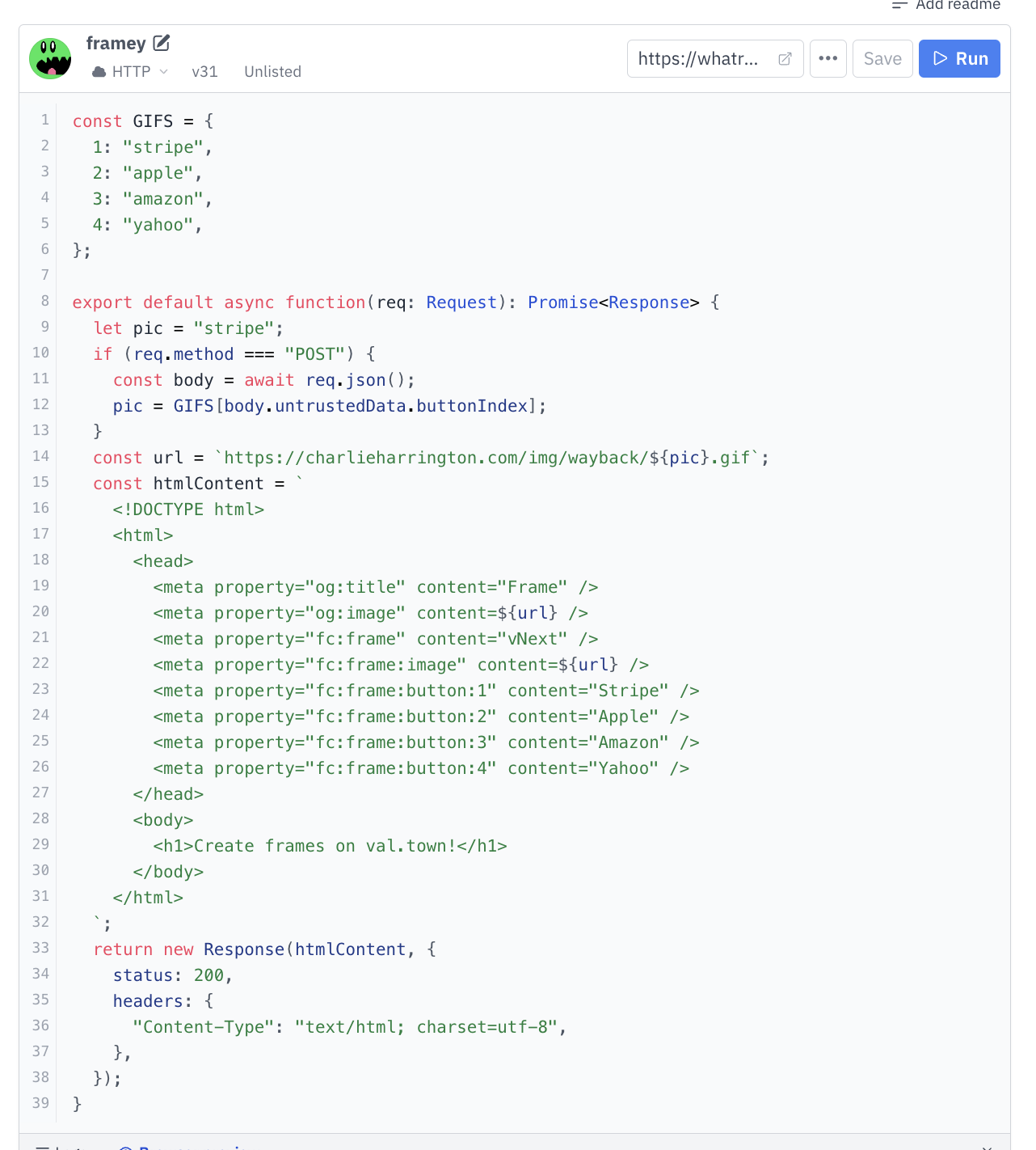 Wayback Machine as a Frame https://warpcast.com/whatrocks/0x0db554a8 source code